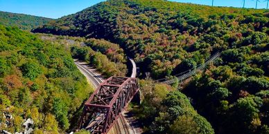 The 150-mile Great Allegheny Passage soars over valleys, snakes around mountains, and skirts alongside three rivers (the Casselman, Youghiogheny, and Monongaleha) on its nearly level path. Cyclists pass through the Cumberland Narrows, cross the Mason-Dixon Line, top the Eastern Continental Divide at 2,392’, weave through the breathtaking Laurel Highlands, wind their way through 20,633-acre Ohiopyle State Park, journey through the region’s coke, coal, mining, and steel-making corridor, and end at Pittsburgh’s majestic Point State Park.